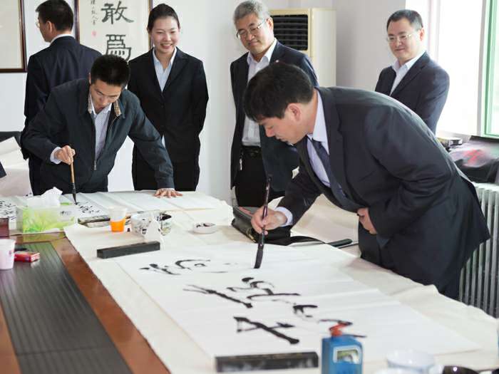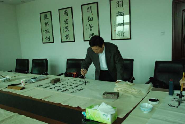 为弘扬传统文化,丰富员工业余生活,5月6日上午,LeYu乐鱼·官方端网站登录入口-乐鱼(中国)举办了首届书画艺术学习交流活动。本次活动邀请了中国书法家协会会员孟云飞博士、中国书法家协会理事张铜彦先生、中国书法家协会编辑出版委员会副主任王荣生教授、人民艺术家协会理事于瑛先生等国内知名书画大师,各位书画大师在活动现场进行了艺术创作表演,挥毫泼墨,交流技艺,为LeYu乐鱼·官方端网站登录入口-乐鱼(中国)留下了数十副墨宝,还对部分员工的书画作品进行了悉心指导。公司员工现场欣赏了书画大师的艺术创作,并聆听了有关书画艺术鉴赏知识的介绍,部分员工还在活动现场进行创作,听取书画大师的讲解示范和点评。